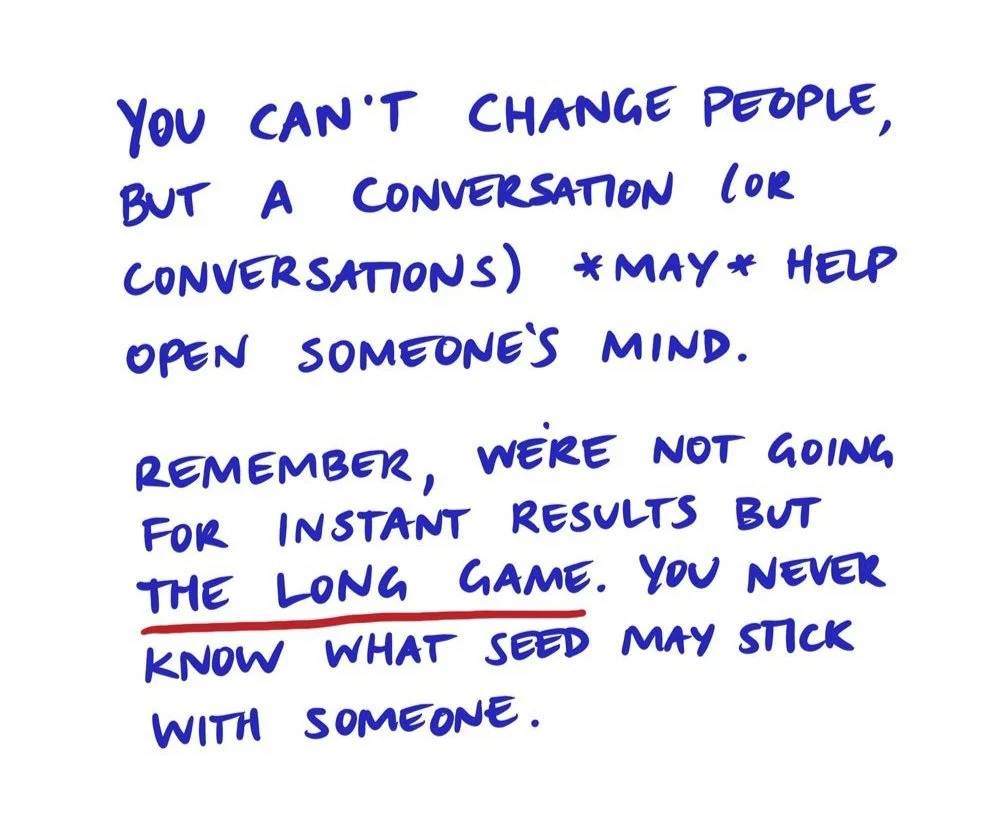 You can’t change people, but a conversation (or conversations) *may* help open someone’s mind.