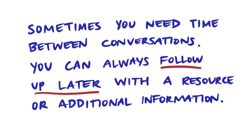 Sometimes you need time between conversations. You can always follow up later with a resource or additional information.
