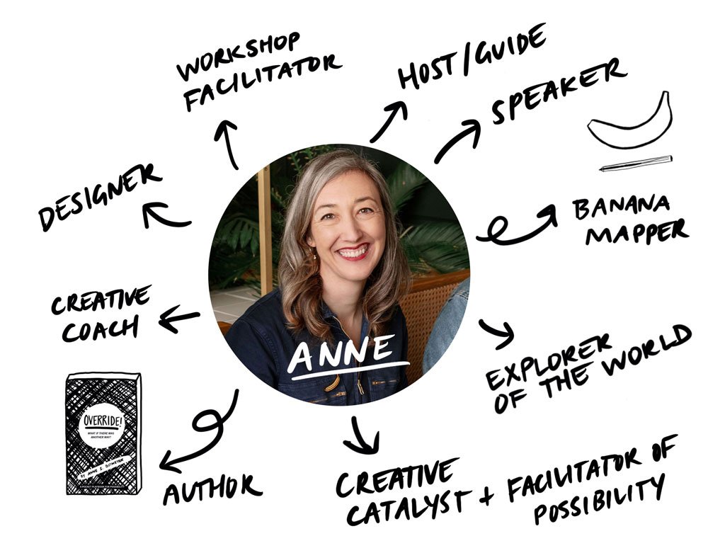 “Anne is a facilitator who meets the moment. In a business world full of noise and surface-level creativity, she brings tools that are playful on the surface but powerful underneath. I’ve watched her guide a group of strangers to meaningful insight, deeper trust, and sharper thinking—all through a creative process that feels engaging, not forced. Her tools may appear simple—even delightfully unexpected, like banana mapping—but they unlock real results. ”